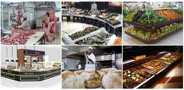 indústria e comércio alimentar, desde as peixarias às charcutarias e Take-Away, passando pelas frutas e legumes e todos os